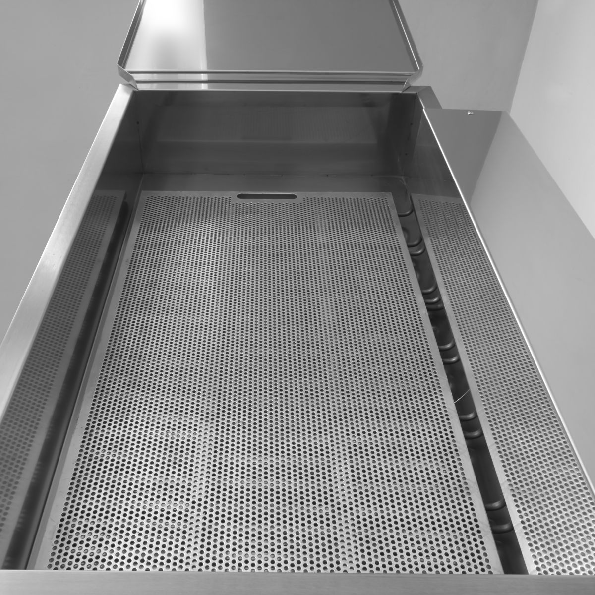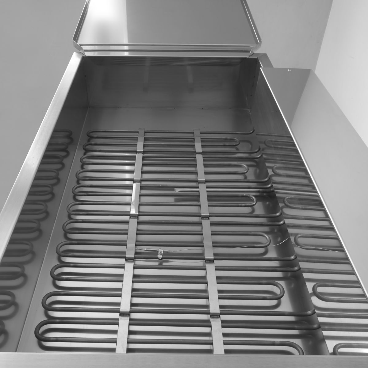 This universal, innovative device is used to heat chocolate or peanut butter. It is also convenient for instant melting products such as butter or frosting. The machine directly heats the chamber with one or two GN containers. It works both on the bottom and on the sides, thanks to which the chocolate heats up much faster. The temperature range is from 20 ° C to 60 ° C.