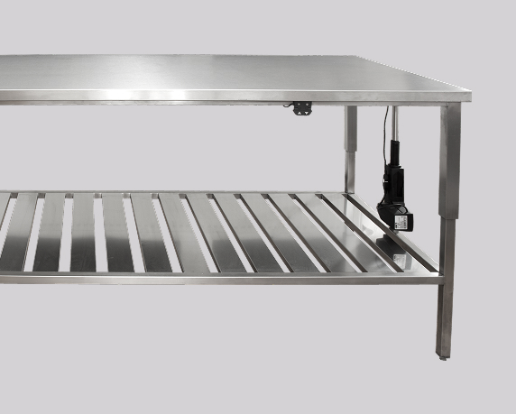 Funkcjonalne i ergonomiczne stoły z regulowaną wysokością, które dopasowują się do potrzeb użytkownika. Stabilna konstrukcja ze stali nierdzewnej, opcjonalne blaty oraz możliwość wyboru wariantu centralnego lub przyściennego zapewniają wygodę pracy. Dodatkowe kółka z hamulcami ułatwiają zmianę ustawienia stołu.