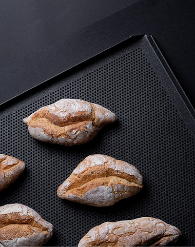 Nasze formy tłoczone z jednego kawałka AluSteel są synonimem trwałości i precyzji. Zaokrąglone narożniki ułatwiają czyszczenie, a karbowane spody wzmacniają wypieki, nadając im idealną formę. Efektem jest wyższa jakość pieczywa i oszczędność Twojego czasu.