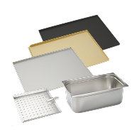 Powierzchnie certyfikowane dla żywności i odporne na intensywną eksploatację: AluSteel, syntetyczny materiał ABS i powłoki Non-Stick.